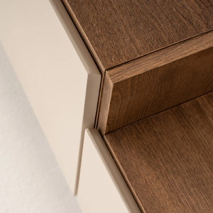 Dış Yüzey MDF üzeri Doğal ahşap kaplama ve ipek mat lake boya.